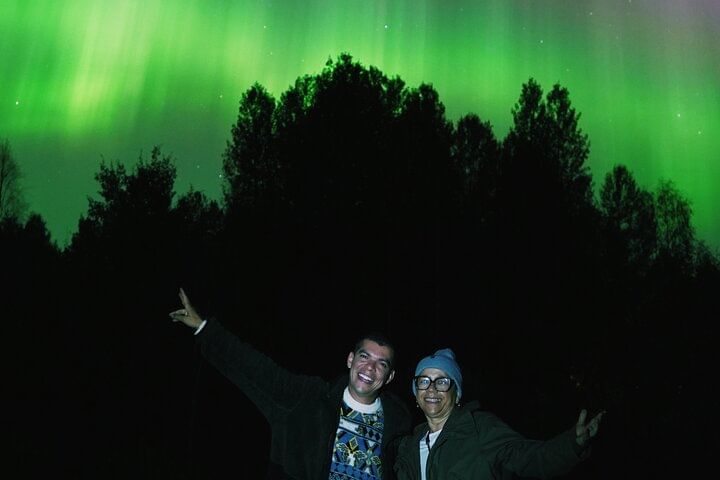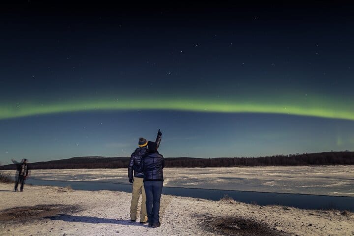 Experience the magic of Northern Lights in Lapland: storytelling, hot sausages by the fire, and the mesmerizing Aurora show.