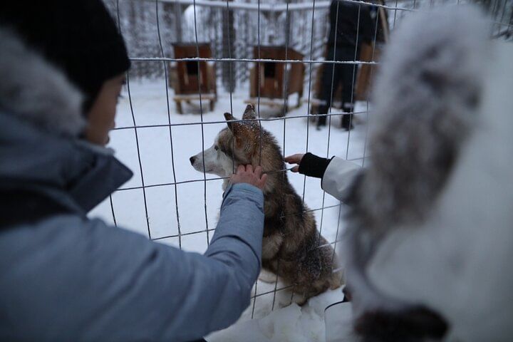 Hotel pick up and drop off Professional English speaking guide Reindeer sledge ride Husky sledge ride Hot juice on the farm